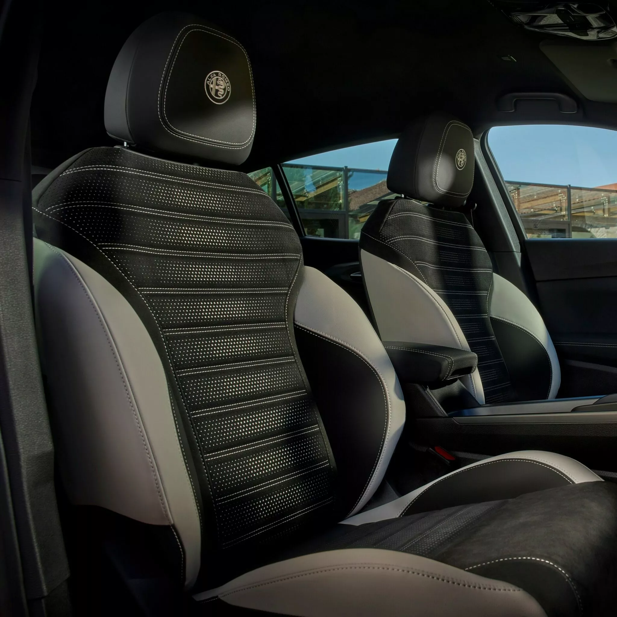 La interior, Alfa Romeo Tonale facelift mizează pe finisaje elevate: cusături contrastante pe bord, panouri de uşi şi cotieră, plus, în premieră, opţiune pentru tapiserie integrală din piele roşie. Consola centrală a fost redesenată şi introduce selectorul rotativ de transmisie, în timp ce display-ul digital pentru indicatoarele de bord şi ecranul sistemului multimedia îşi păstrează dimensiunile, dar au primit actualizări de calitate a materialelor. Astfel, habitaclul transmite mai multă coerenţă cu imaginea de marcă premium a constructorului auto italian.