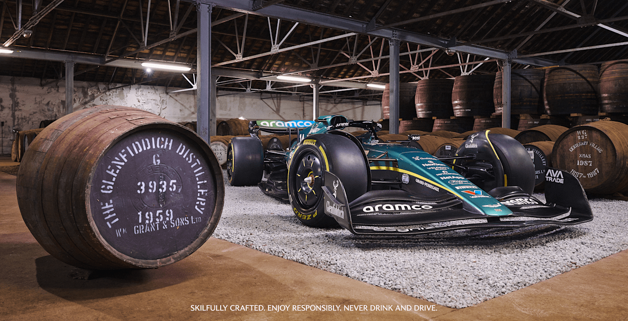 Marcarea debutului global al Glenfiddich ca partener oficial al Aston Martin în domeniul whisky-ului se bazează, de fapt, pe relația sa deja existentă cu echipa Aston Martin Formula One™. S-a întâmplat la Marele Premiu de la Las Vegas din 2024, moment marcat printr-o sticlă comemorativă de whiskey învechită într-un butoi rar din 1959. În fapt a fost un omagiu adus anului în care Aston Martin a debutat în Formula 1 și anului în care a câștigat a 27-a ediție a cursei de la Le Mans.