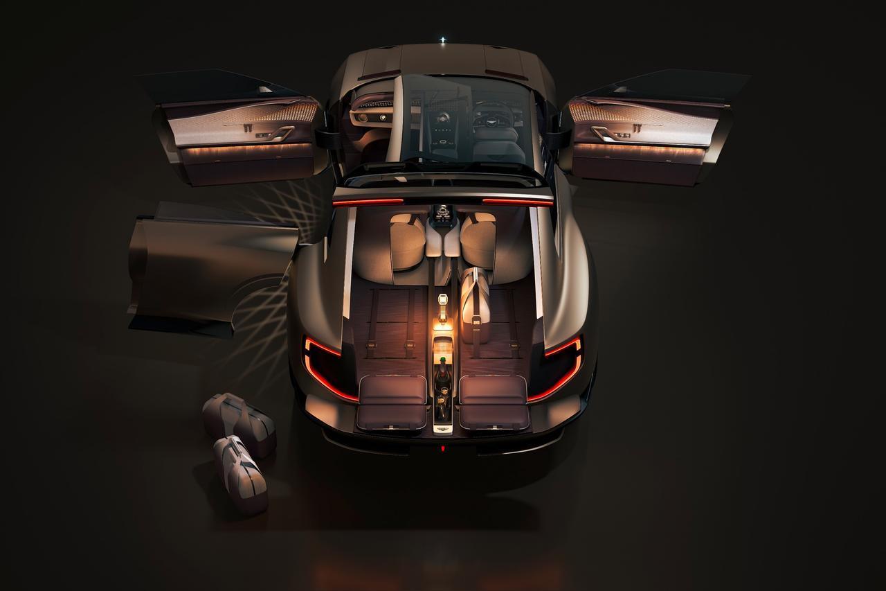 Bentley EXP 15 a fost gândit pentru stil de viață activ, cu soluții de depozitare neconvenționale. Capota față, divizată în două, ascunde compartimente separate, utile pentru bagaje sau echipamente. La spate, sub hayon, un panou se deschide în jos și include două scaune rabatabile, o consolă cu frigider și chiar o lampă cu lumină caldă – un spațiu de relaxare ideal pentru evenimente outdoor sau picnicuri sofisticate.