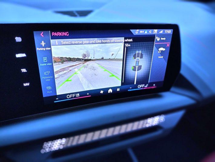 Sistemul de asistență la depăşiri monitorizează traficul din proximitate şi este atent la acţiunile pe care le iniţiez. Pentru că semnalizez şi apoi mă asigur în retrovizoare dacă pot executa manevra în siguranţă reprezintă factorul declanşator care activează executarea automată a manevrei. Revenirea pe banda de pe care am plecat se desfășoară fără să fac nimic altceva în afară de a semnaliza şi de a privi preţ de o secundă în oglindă retrovizoare. Şi da! Funcţionează şi noaptea…