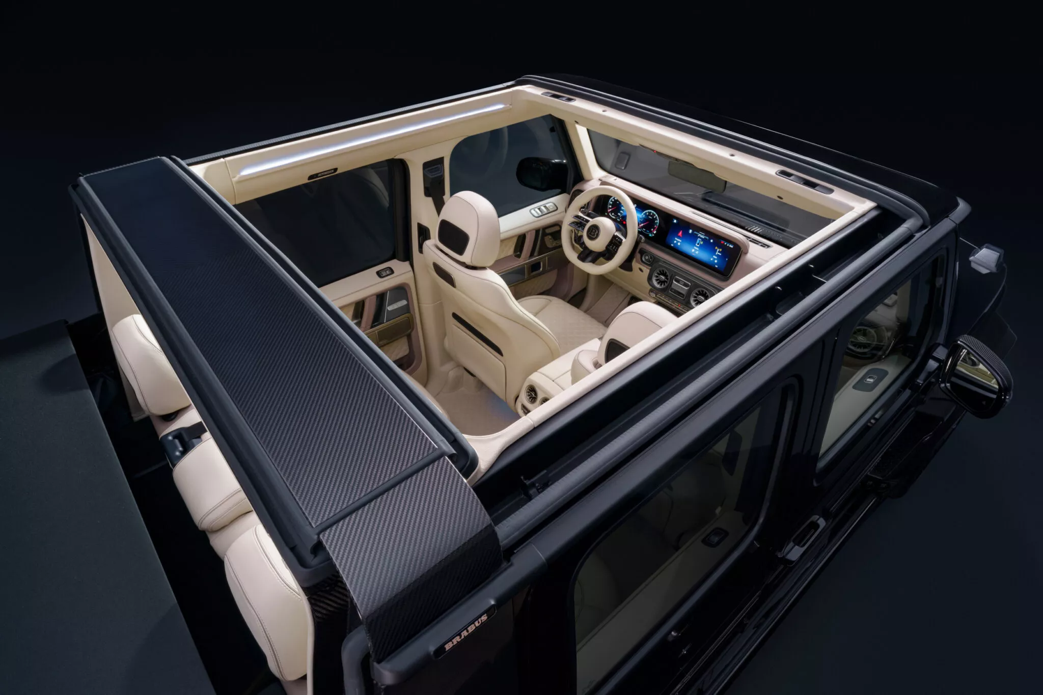 Bazate pe platforma Mercedes-AMG G 63, aceste aceste două variante redefinesc ce poate însemna Clasa G, atât pe asfalt, cât și în teren accidentat. Producătorul german de versiuni auto extreme Brabus a montat la Cabrio 800 și Cabrio 800 XL un plafon textil retractabil, alcătuit din peste 500 de componente special create, care se deschide sau se închide în doar 20 de secunde la simpla apăsare a unui buton. Partea mobilă din spate include un geam încălzit, iar pentru stabilitate la viteze mari, plafonul dispune de un arc din fibră de carbon fixat pe cadrul lunetei, menținând conturul intact. În spate, o bară de protecție din oțel cu elemente din carbon aduce siguranță, iar o husă specială protejează acoperișul când acesta e coborât pe perioade mai lungi.