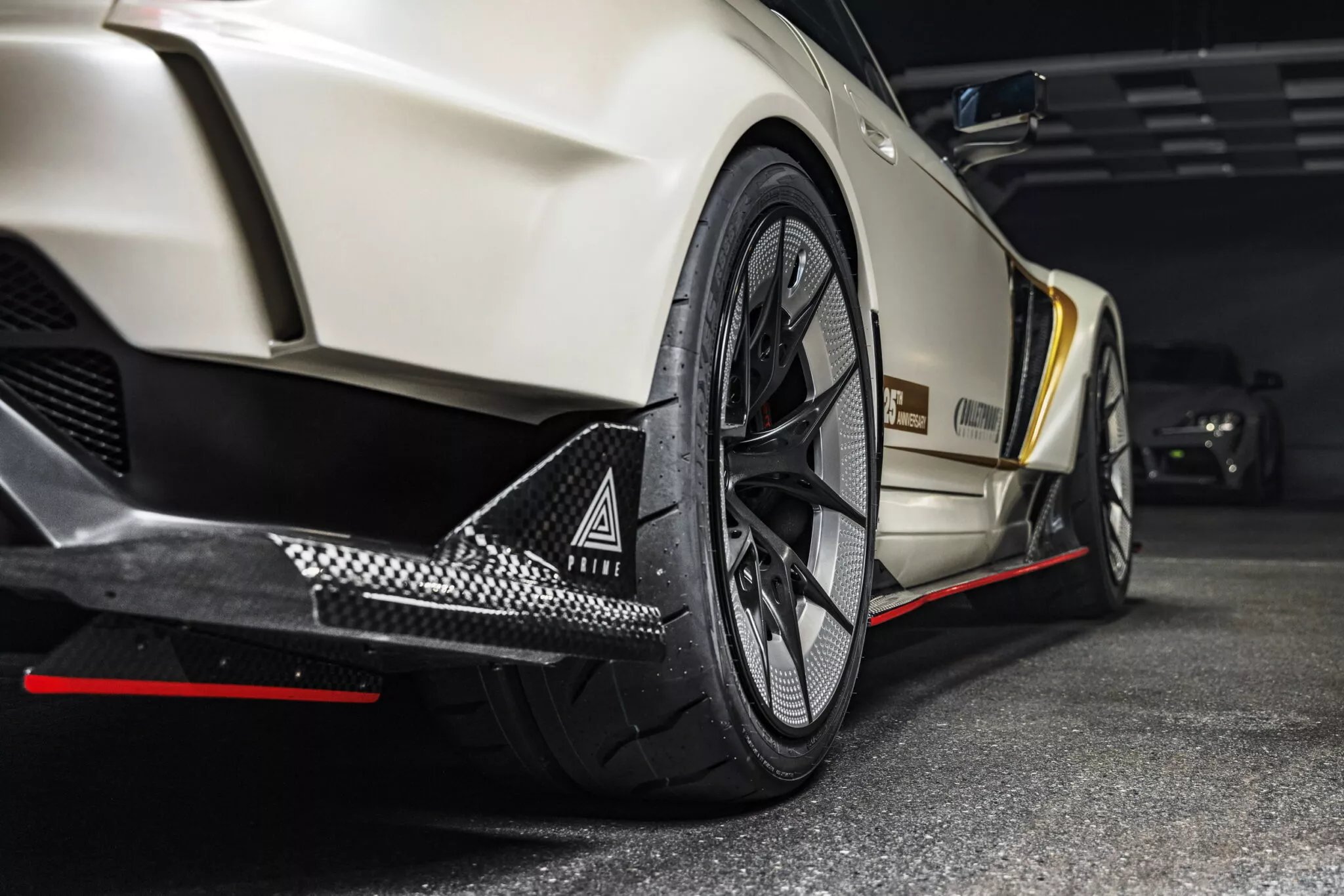 Caroseria e finisată în nuanţa de alb perlat Lamborghini Balloon White, cu grafică aurie şi accente roşii, completată de oglinzi din fibră de carbon și magneziu, la care se adugă stopuri LED personalizate. Jantele forjate de 19 inci, model BP-RW Evolution, sunt realizate prin tehnica japoneză „tsuchime” (prelucrare manuală cu ciocanul) şi ascund etriere de frână Brembo Pista. Anvelopele sunt Toyo Tires Proxes R888R.