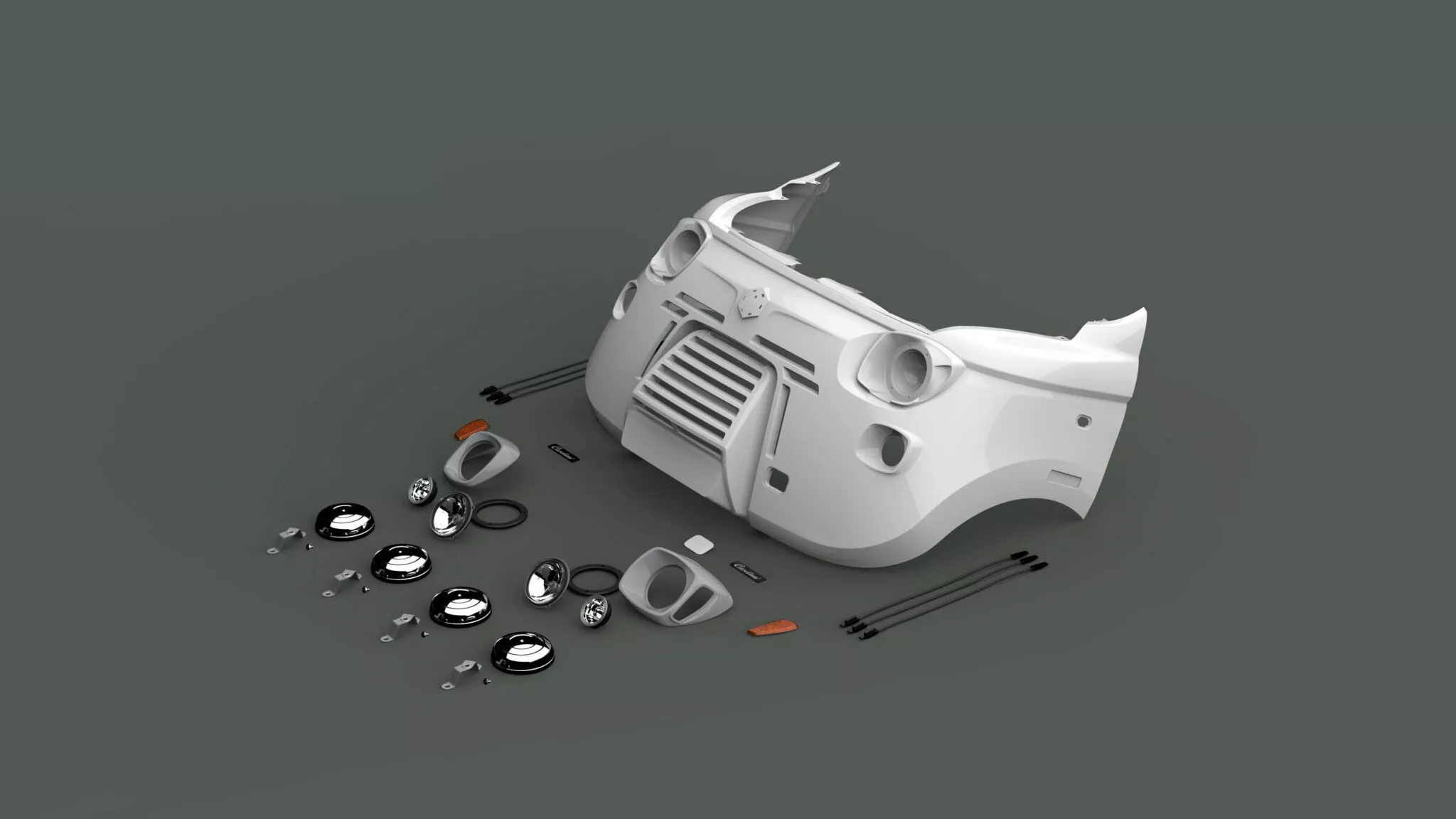 Kitul principal este realizat din componente din fibră de sticlă, iar luminile retro provin de la furnizori consacrați, precum Hella și Giantlight, asigurând nu doar un look autentic, ci și performanță optimă a sistemului de iluminare.