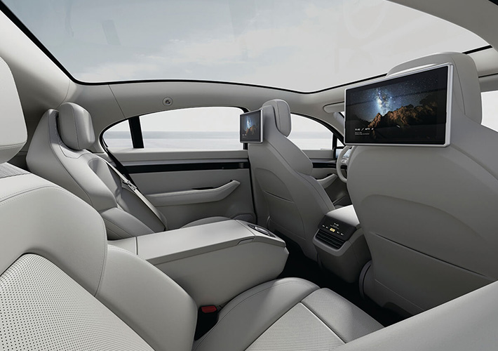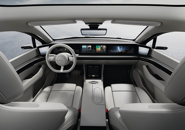 La nivel de design, Sony Vision-S are linii inspirate de noul Porsche Taycan. La interior, primul lucru care atrage atenția este display-ul uriaș ce se întinde pe întreaga lungime a bordului similar cu cel folosit de modelul chinezesc Byton M-Byte.