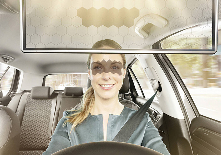 Este de fapt un ecran LCD transparent de dimensiunile unui parasolar clasic. În LCD sunt încorporate elemente hexagonale ce pot fi activate pentru a bloca lumina soarelui în funcție de poziția celui de la volan.