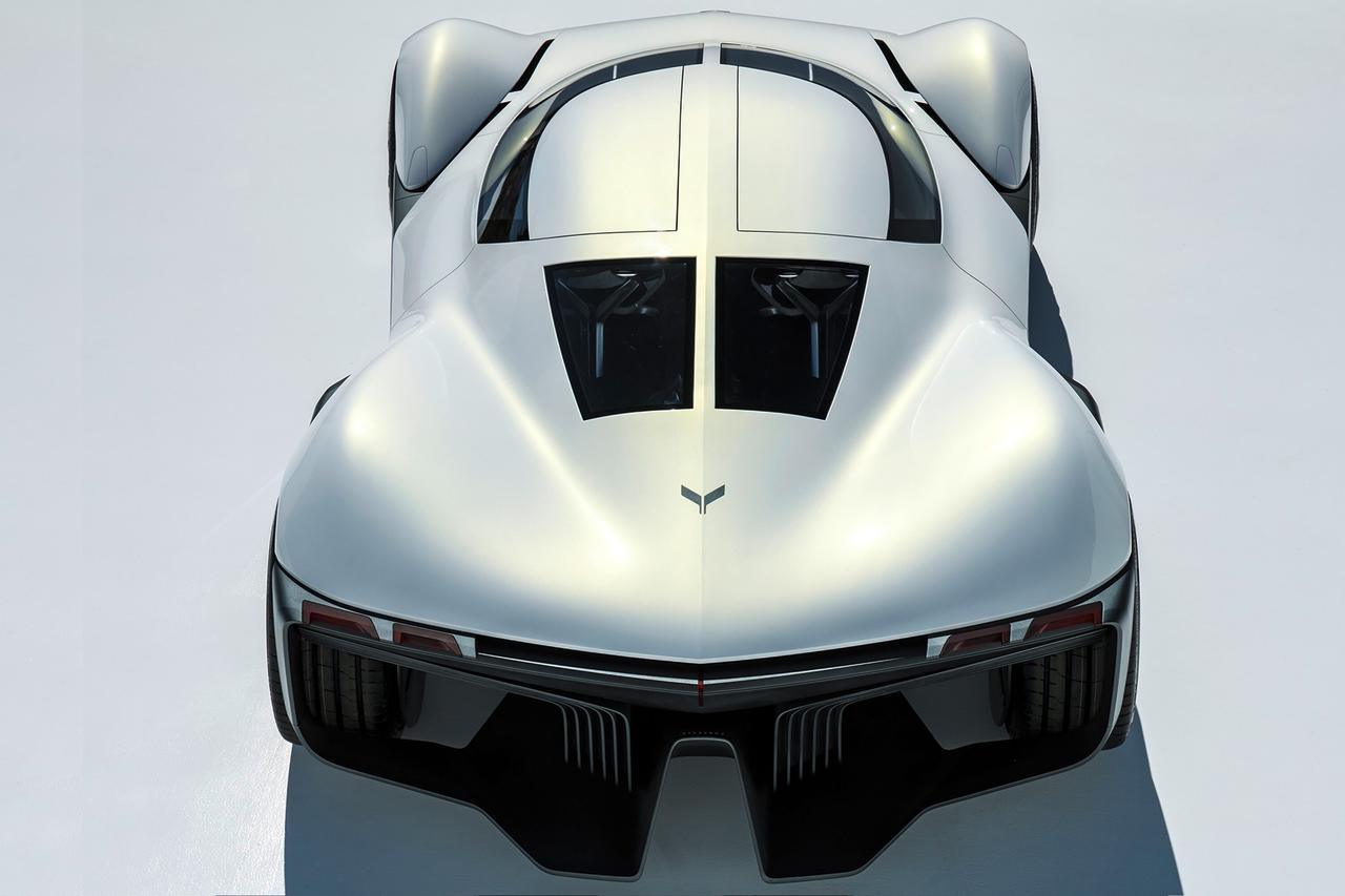 Detalii, precum parbrizul puternic înclinat și segmentat vertical, ca și și luneta „split window”, amintesc de celebra Corvette C2 Sting Ray din 1963. Habitaclul integrează un sistem de realitate augmentată, iar poziția șoferului este ultra-joasă – la doar 13 cm de sol. Ușile se deschid în stil fluture, iar jantele au 22 de inci pe față și 23 pe spate. Caroseria este imprimată 3D, un detaliu care accentuează caracterul său experimental.