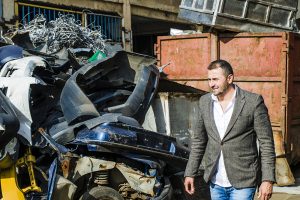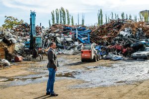 Greutățile foarte mari din munții de deșeuri se manevrează cu un Graifer Fuchs, o mașinărie rapidă și costisitoare, dotată cu o gheară ce pare o copie a unei mâini. În orice caz este o mână tare puternică dacă reușește să mute, de colo-colo, sute de kilograme de metal. Un frate mai mic, un excavator, manipulează materialele ceva mai ușoare. „Înlocuiește munca a cinci oameni care ar fi lucrat în condiții de «sclavie», mai ales pe timp de iarnă” mă lămurește conducătorul firmei. Radu Porumb lucrează de mult timp în branșă. Îmi spune că îi este tot mai greu să găsească oameni pricepuți. Și mai are un mare of. În 2014 s-a schimbat legislația din domeniu și din 192 de colectori autorizați s-a ajuns la 980. „Sunt mulți care se ocupă de «casare la roata mașinii». Cu asta eu nu sunt de acord. Nimeni nu știe ce se întâmplă cu acele lichide poluante, ca să dau doar un exemplu. Tu faci investiții de milioane, respecți regulile, dar nu te ajută nimeni în munca asta grea și nenorocită. Mă sună mulți clienți care au pățit la fel ca tine, li s-a spus că nu au nimic de primit după ce au predat mașina. De ce? Îi sfătuiesc pe toți cei care vor să renunțe la mașină să nu se lase păcăliți. Contactați doar colectori autorizați”, spune Radu Porumb.