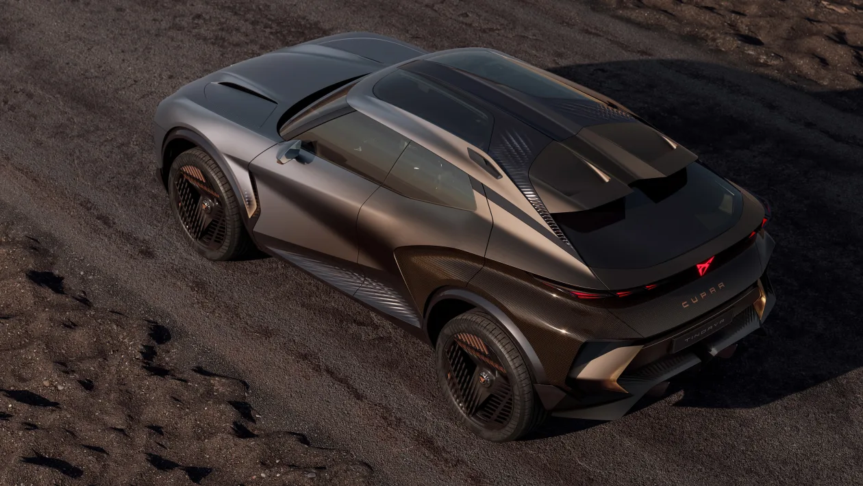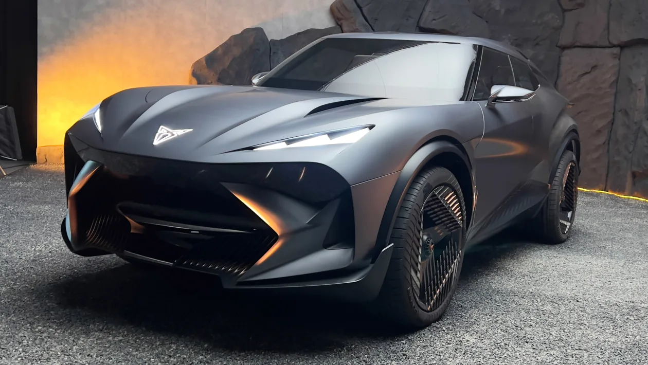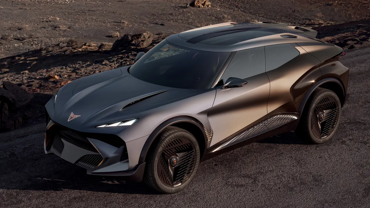 Partea frontală aduce o interpretare extremă a „shark nose”-ului (nas de rechin), cu capotă sculptată, elemente transparente luminoase și semnătura în trei triunghiuri a farurilor. Sub sigla iluminată se află un panou digital, care proiectează animații în funcție de modul de condus. Privind conceptul din lateral, ni se dezvăluie o siluetă atletică, între fastback și shooting brake, cu geamuri înguste și plafon plonjat spre spate. Jantele de 23 de inci, inspirate de emblema Cupra, și pragurile ondulate completează imaginea unui SUV cu adevărat spectaculos.