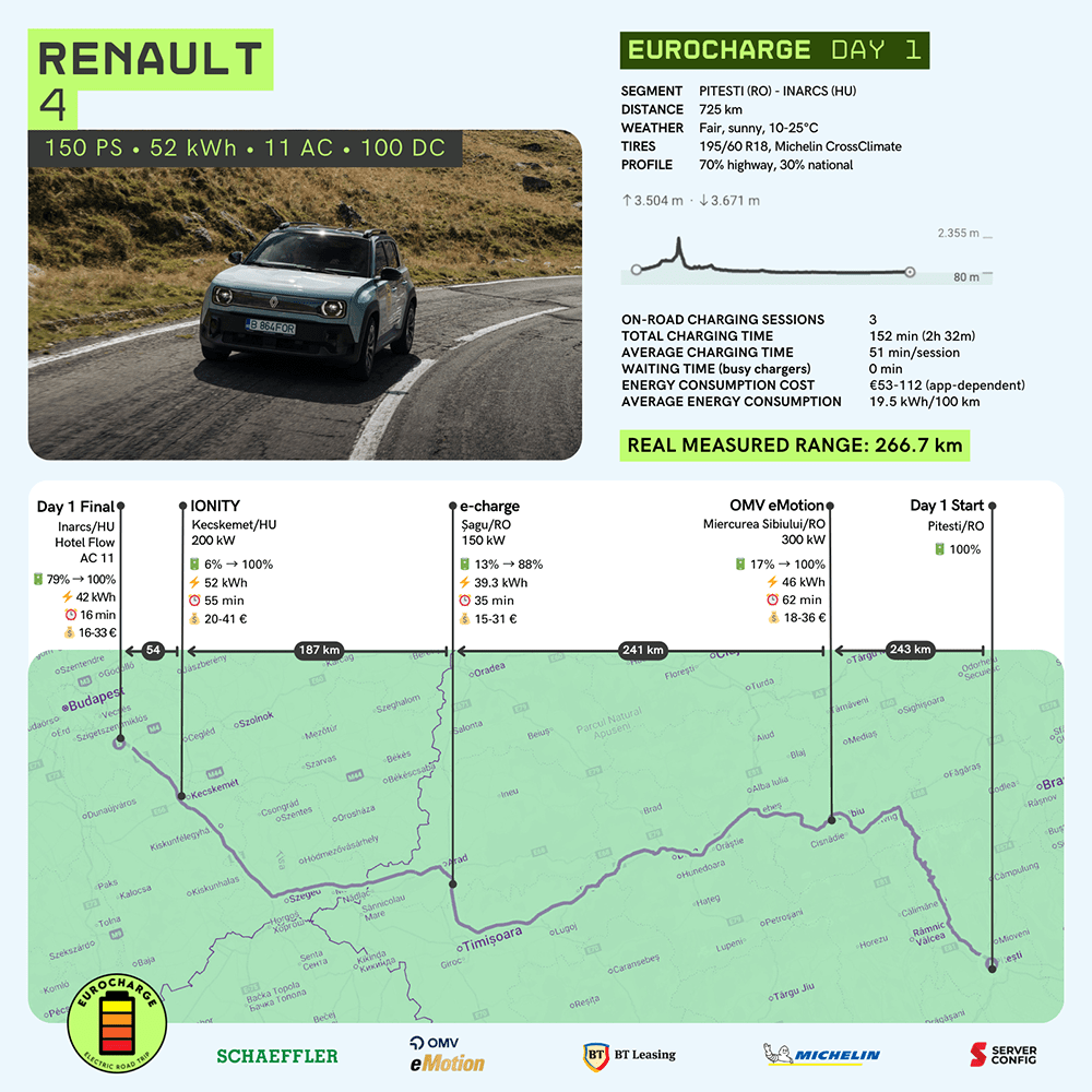 Acasă EUROCHARGE by Schaeffler 2025: 5000 km cu 8 mașini electrice – cifre de consum reale, episodul 3 Renault-Day-1