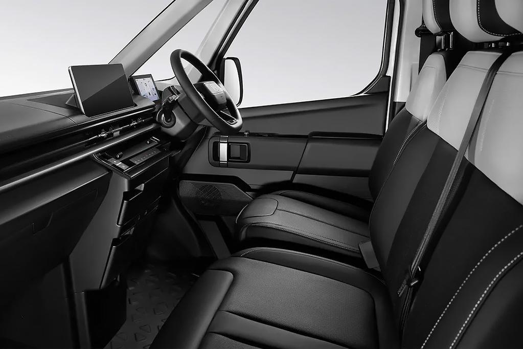 Farizon oferă dotări extinse standard, fără niveluri de echipare diferite: scaune din piele încălzite și ventilate, volan multifuncțional și parbriz încălzite, cameră pe 360°, radare față/spate, ecran central de 12,3 inci și display digital de bord de 7,0”. Climatizarea automată, cele două porturi USB, sistemul de monitorizare a sarcinii utile, frânarea automată de urgență și asistența la menținerea benzii sunt incluse. Modelul a obținut ratingul Euro NCAP Platinum, rar atins de utilitare.