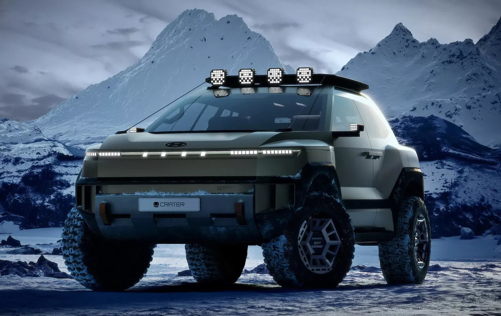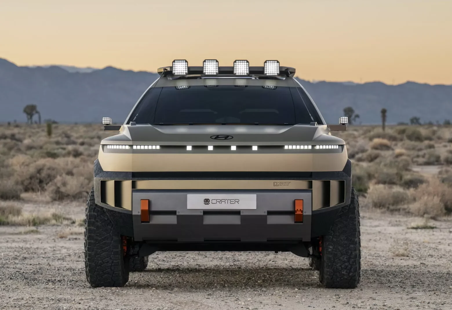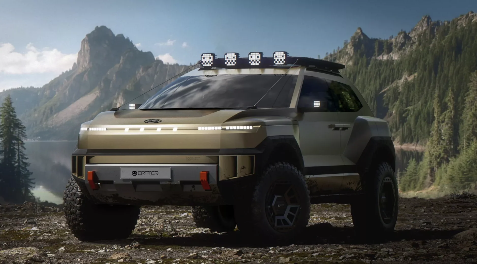 Hyundai Crater Concept a debutat în lumina reflectoarelor la AutoMobility LA 2025, prezentând o estetică agresivă și dedicată aventurii. Construit la centrul tehnic Hyundai din Irvine, California, vehiculul este gândit ca o manifestare a spiritului XRT, linia Off-Road a mărcii sud-coreene. Exteriorul adoptă limbajul „Art of Steel”, cu volume sculptate și suprafețe dure, ce transmit o senzație de rezistență și precizie. Proporțiile compacte combină un design scurt și înalt, cu unghiuri de atac și degajare accentuate, ideale pentru terenuri dificile.
