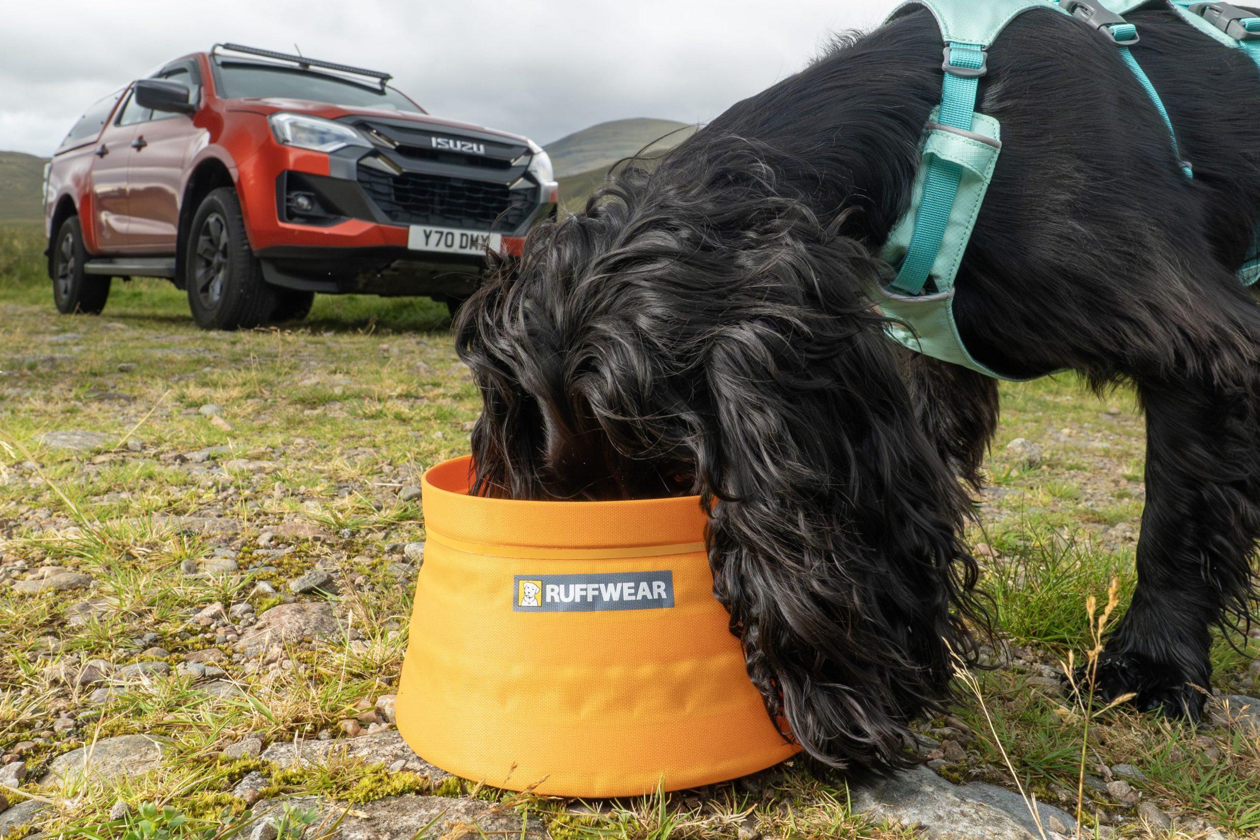 Colecția atent selecționată Isuzu D-Max x Ruffwear include articole pentru călătorie și confort, protecție împotriva intemperiilor, siguranță, hamuri și accesorii pentru vehicule. Pe scurt accesoriile premium pentru câini destinate D-Max, includ hamuri, boluri, paturi, huse de scaun și jachete pentru proprietarii de câini aventuroși.