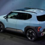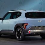 Partea din spate a fost desenată curat, cu stopurile amplasate în marginile aripilor laterale și cu un element de protecție suplimentar prezent în bara de protecție. Kia EV2 are o lungime de 4060 milimetri, o lățime de 1800 milimetri și o înălțime de 1575 milimetri. Ampatamentul noului model măsoară 2565 milimetri.