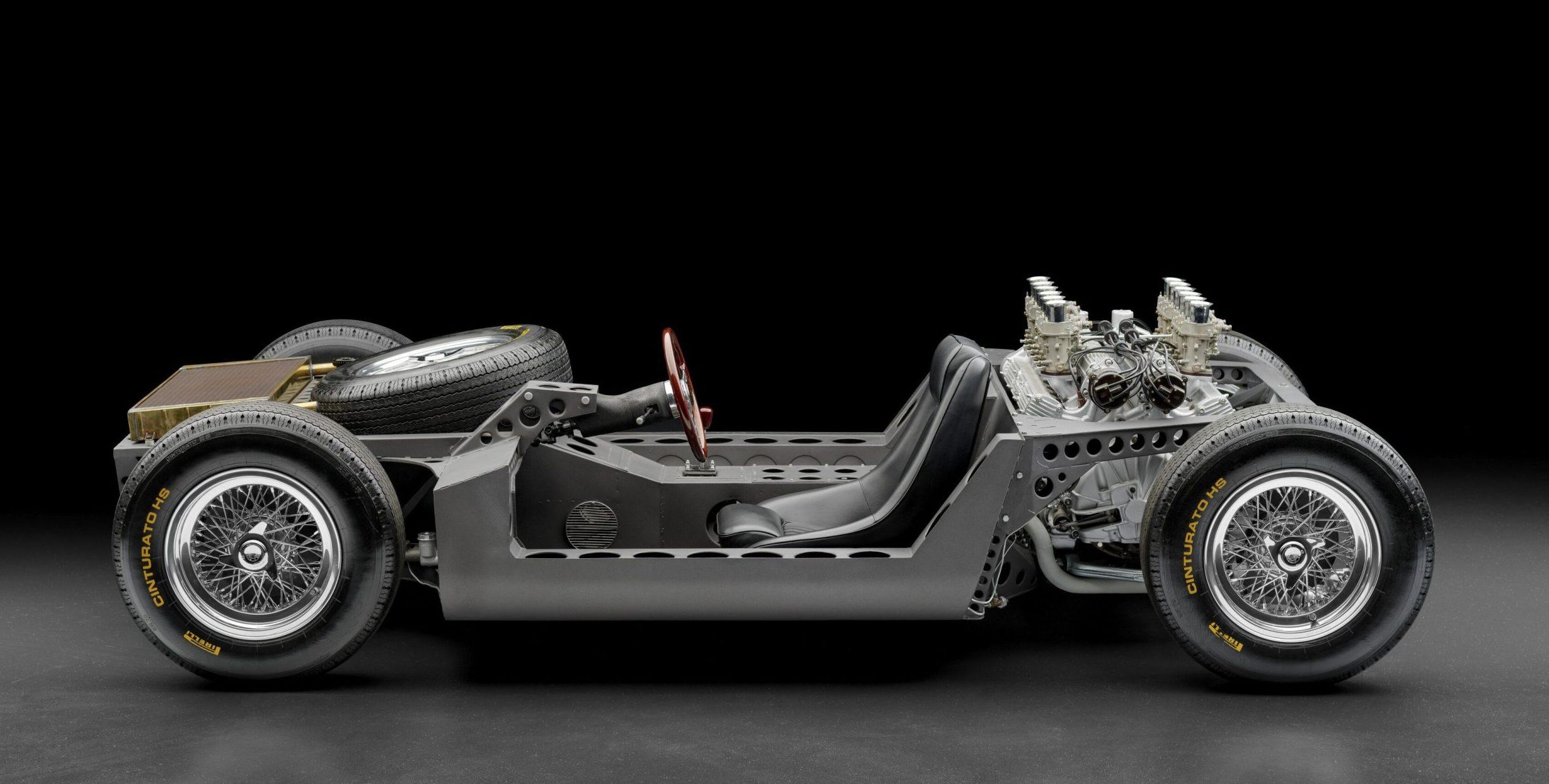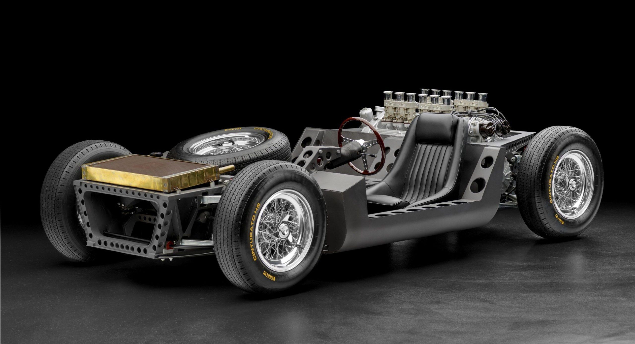 Trăsătura sa distinctivă a fost integrarea fără precedent a motorului și a cutiei de viteze într-o singură unitate compactă montată în spatele cabinei. Această soluție a redus dimensiunile și a definit o arhitectură complet nouă a sistemului de propulsie. Spectacolul tehnic a fost completat de cele douăsprezece trompete verticale de admisie ale carburatoarelor Weber, o declarație vizuală puternică a unui concept ingineresc împins la extrem.