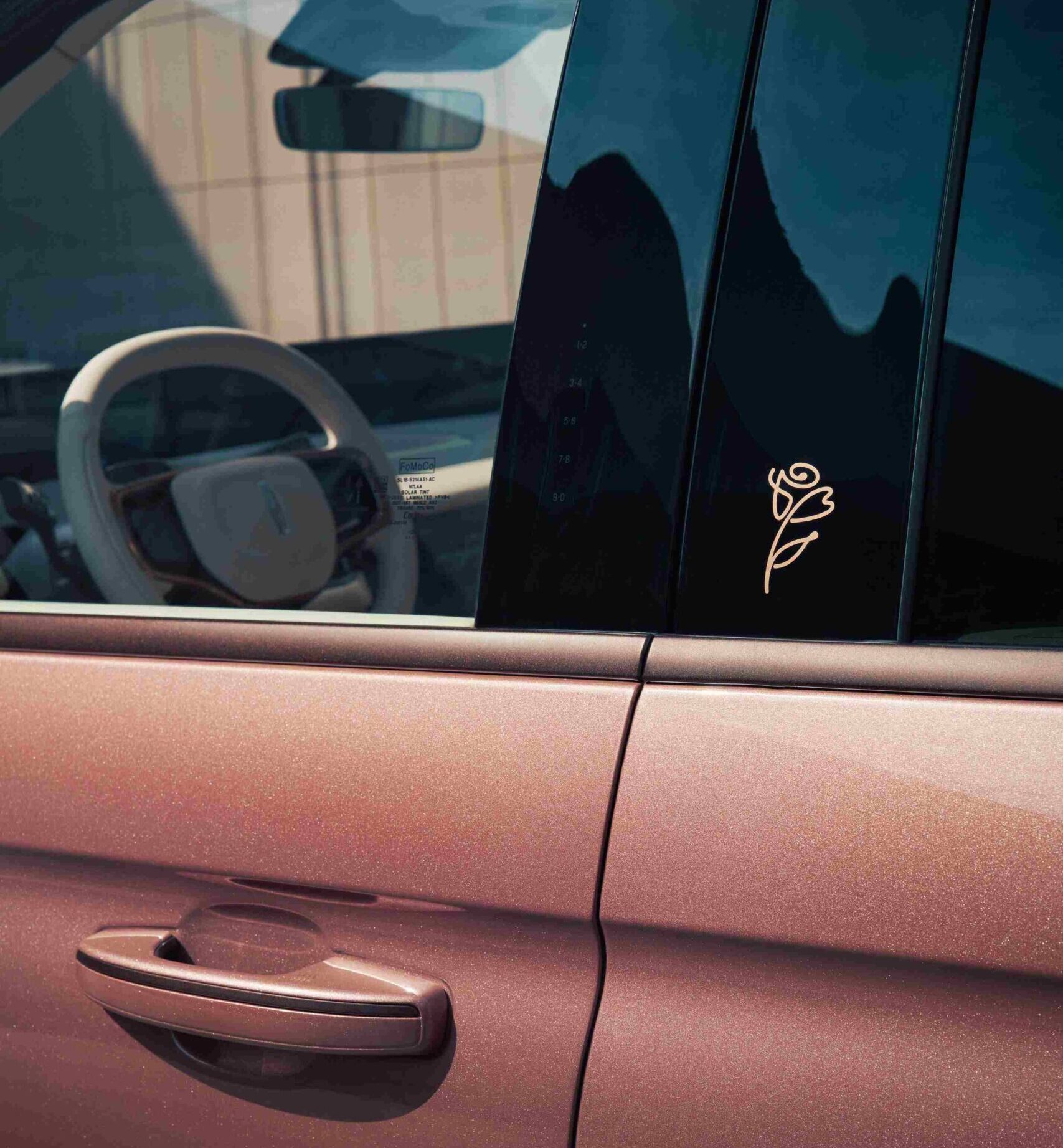Un trio adorat – Serena a destăinuit că a iubit întotdeauna trei lucruri: culoarea roz, inimioarele și trandafirii. Echipa noastră de design Brand-on-Vehicle a creat un simbol elegant al trandafirului, cu o petală în formă de inimă, îmbinând astfel elementele ei favorite. Simbolul apare pe stâlpul B și, precum și pe Split Gateway din spate.