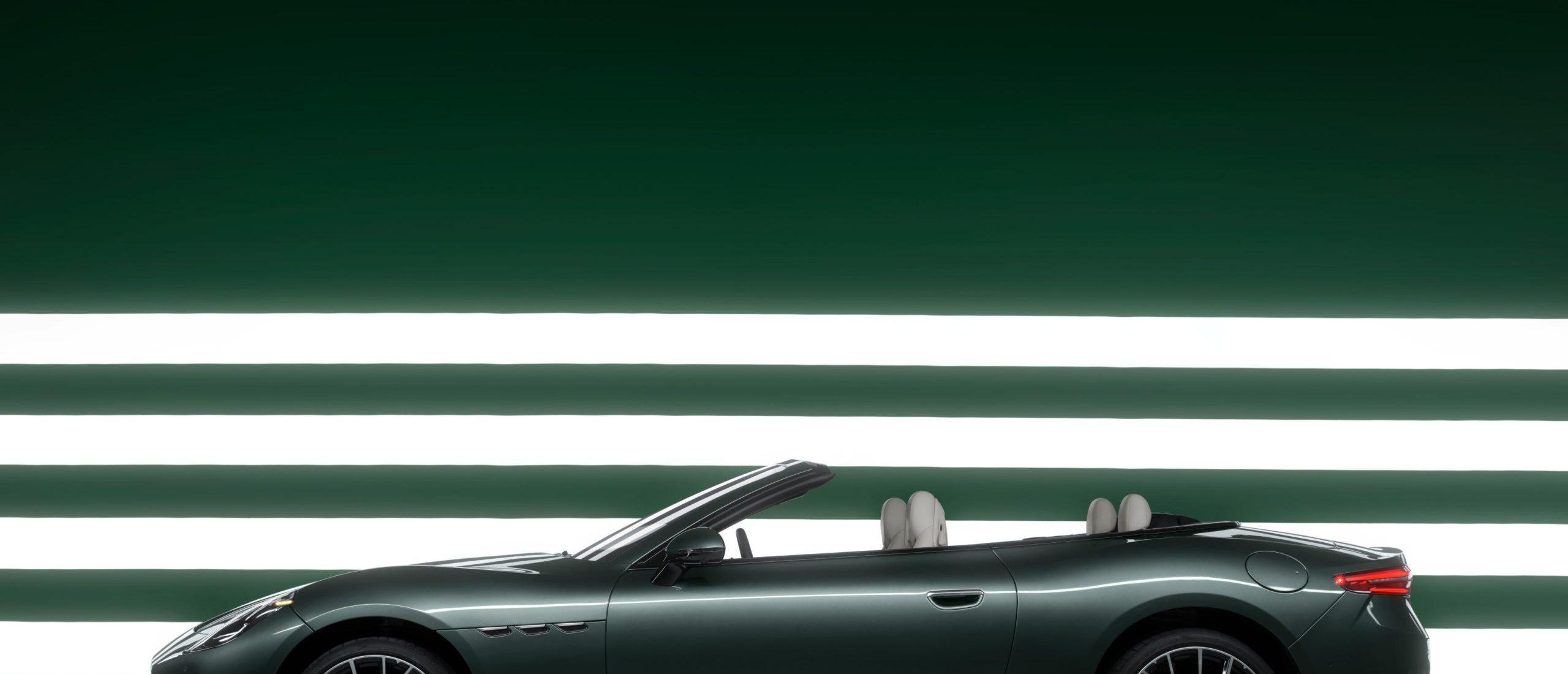 GranCabrio-ul expus avea culoarea caroseriei Verde Giada, nou introdusă în gamă, etriere de frână negre și roți de 20 țoli față și 21 țoli spate cu design Crio (Imola) în negru lucios diamant. Interiorul este din piele integrală perforată de culoarea gheții, cu logo-ul Maserati Trident brodat pe tetiere. Specificațiile modelului afișat includeau și un sistem de sunet Sonus Faber high premium cu 19 difuzoare, finisaje 3D din fibră de carbon și faruri full LED adaptive cu finisaj închis la culoare.