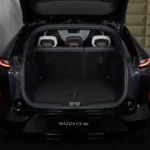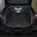 Habitaclul este zona în care Mazda CX-6e încearcă să compenseze performanțele tehnice printr-o abordare futuristă. Un ecran panoramic de 26 de inci domină bordul, iar afișajul head-up elimină nevoia unui instrumentar de bord clasic. Tehnologia este completată de comenzi gestuale, difuzoare integrate în tetiere și ecrane dedicate oglinzilor-cameră laterale, montate în panourile ușilor. Cu toate acestea, spațiul de din portbagaj rămâne doar adecvat, cu 468 de litri, semnificativ mai puțin decât CX-60 sau Tesla Model Y, deși există un frunk (compartiment sub capota față) de 80 de litri pentru cabluri.