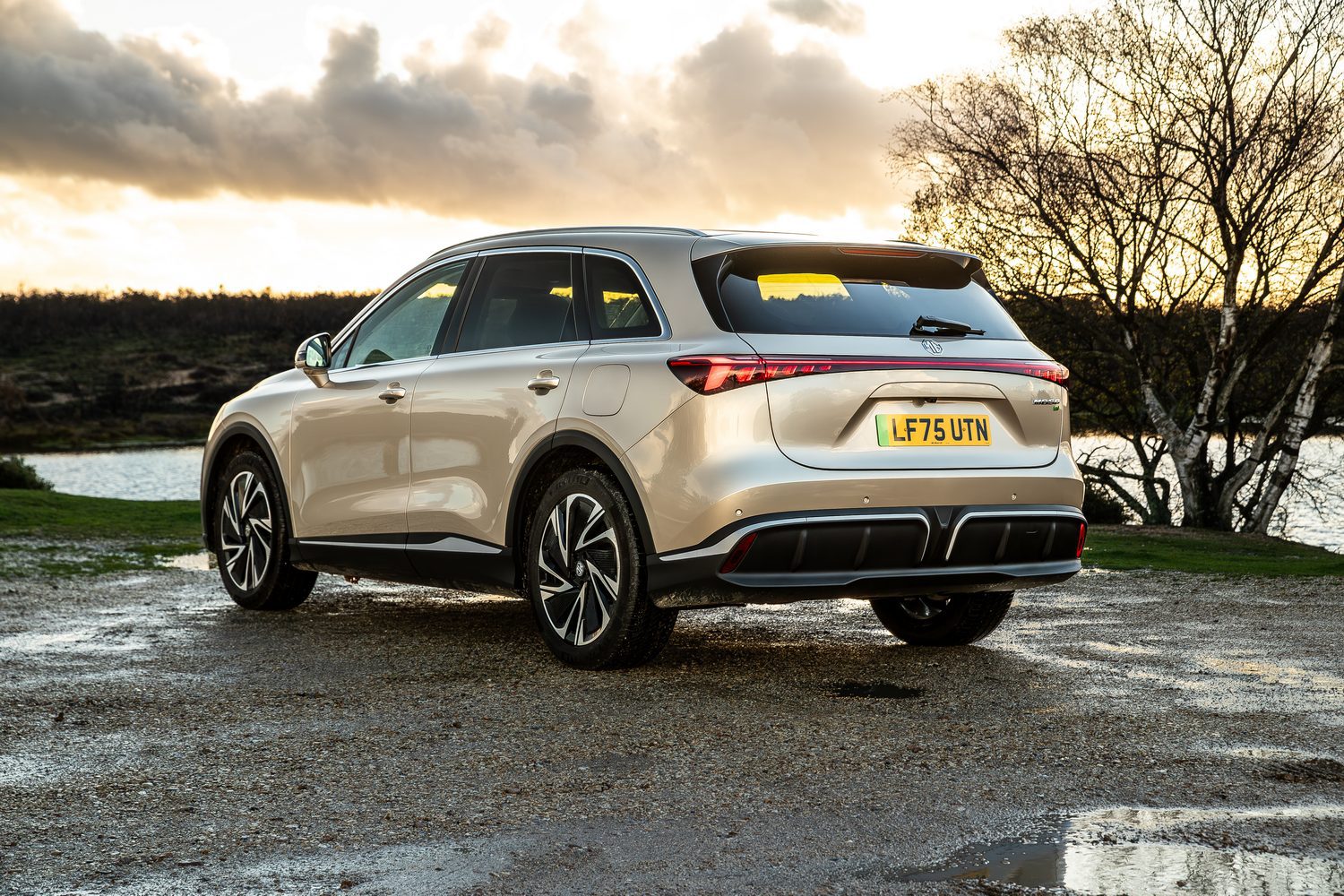 La prima vedere, MG S6 EV impresionează prin proporții bine echilibrate și o prezență vizuală mai îndrăzneață decât modelele precedente ale mărcii. Designul păstrează elemente familiare, precum farurile cu două niveluri, dar le încadrează în forme mai sculptate, creând un aspect frontal robust. Banda luminoasă posterioră și forma generală modernă contribuie la o estetică în ton cu tendințele actuale din segmentul SUV-urilor electrice.
