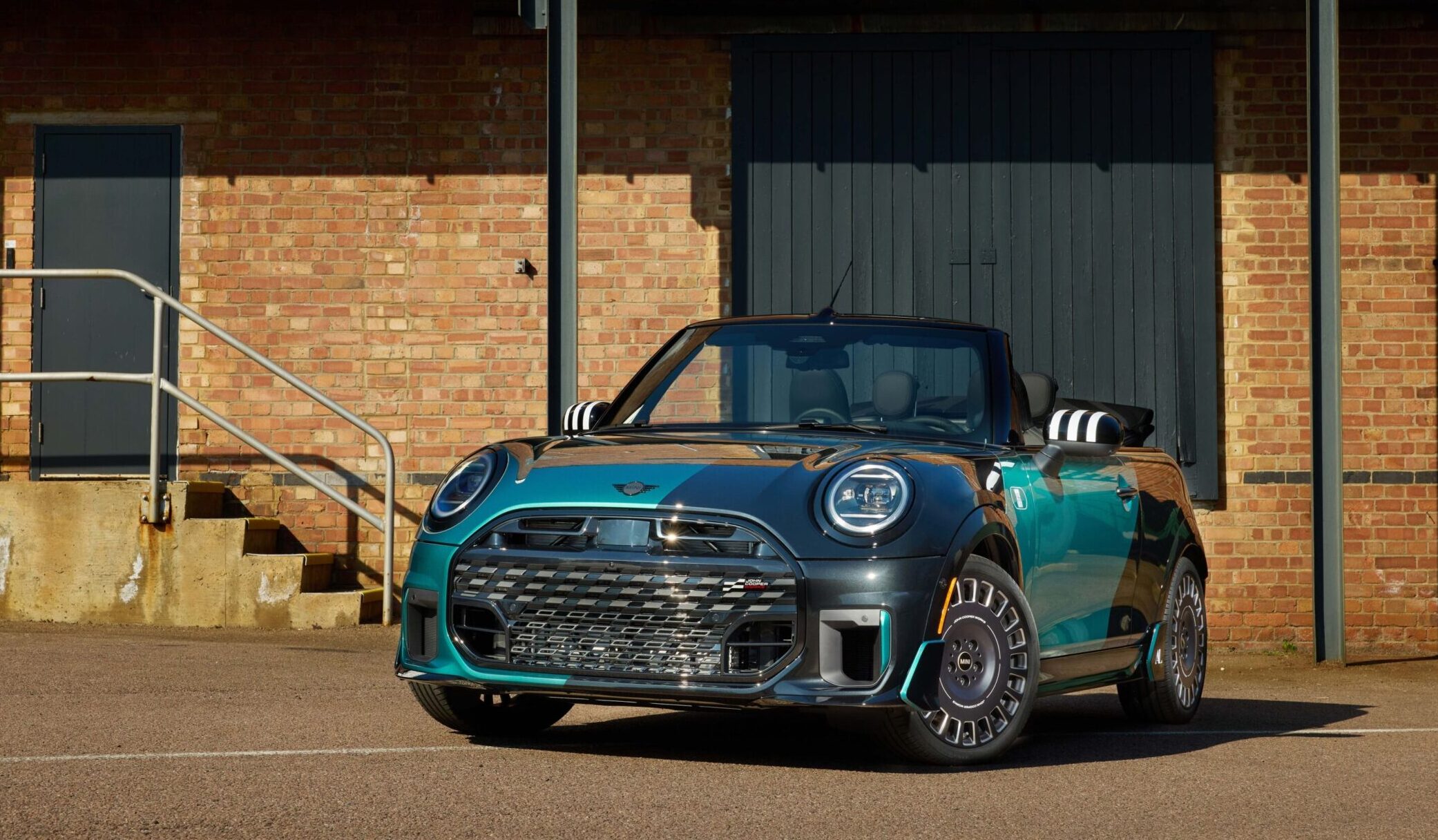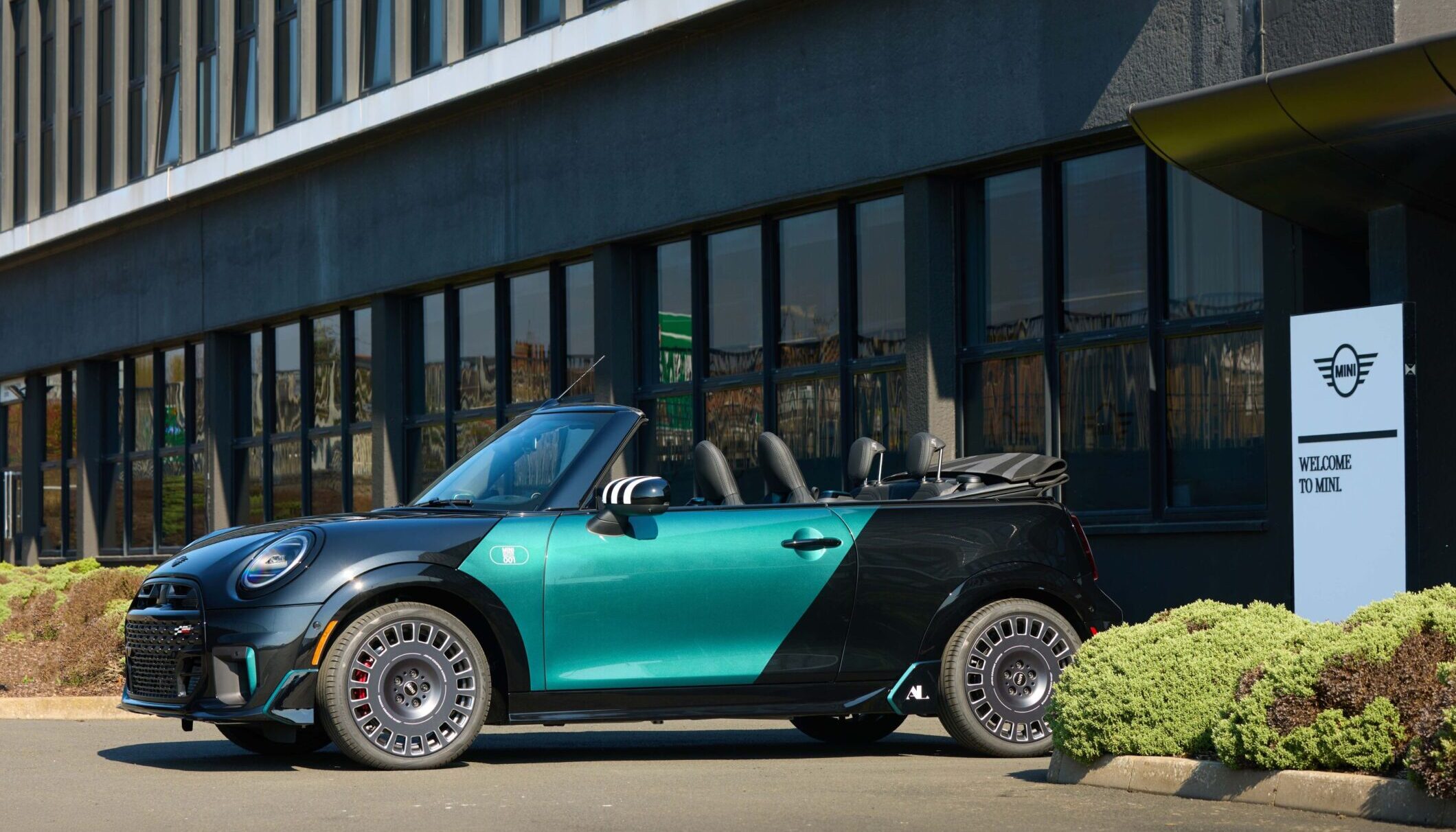 Finisajul exteriorului este bicolor, în Midnight Black și o nuanță unică de verde metalizat. Reprezintă o combinație nemaiîntâlnită până acum la un MINI fiind aleasă personal de viitorul posesor.