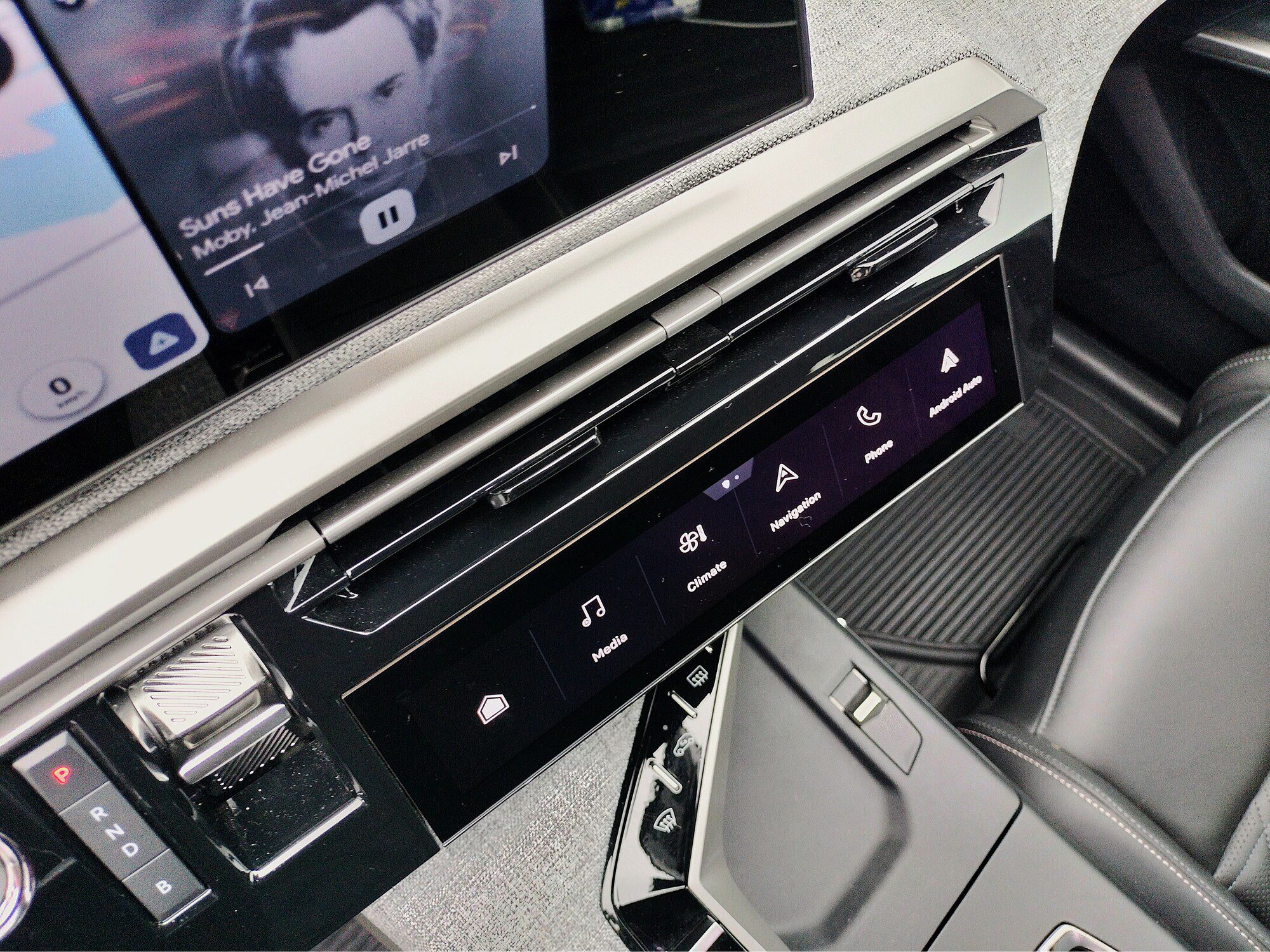 Din arsenalul digital propus de Peugeot 3008 PHEV face parte și ecranul secundar al tabletei centrale, toggles. Înălțimea de o șchioapă nu-l incomodează să adune până la 10 comenzi favorite, customizabile,  pe care le poți accesa direct și doar printr-un simplu click.