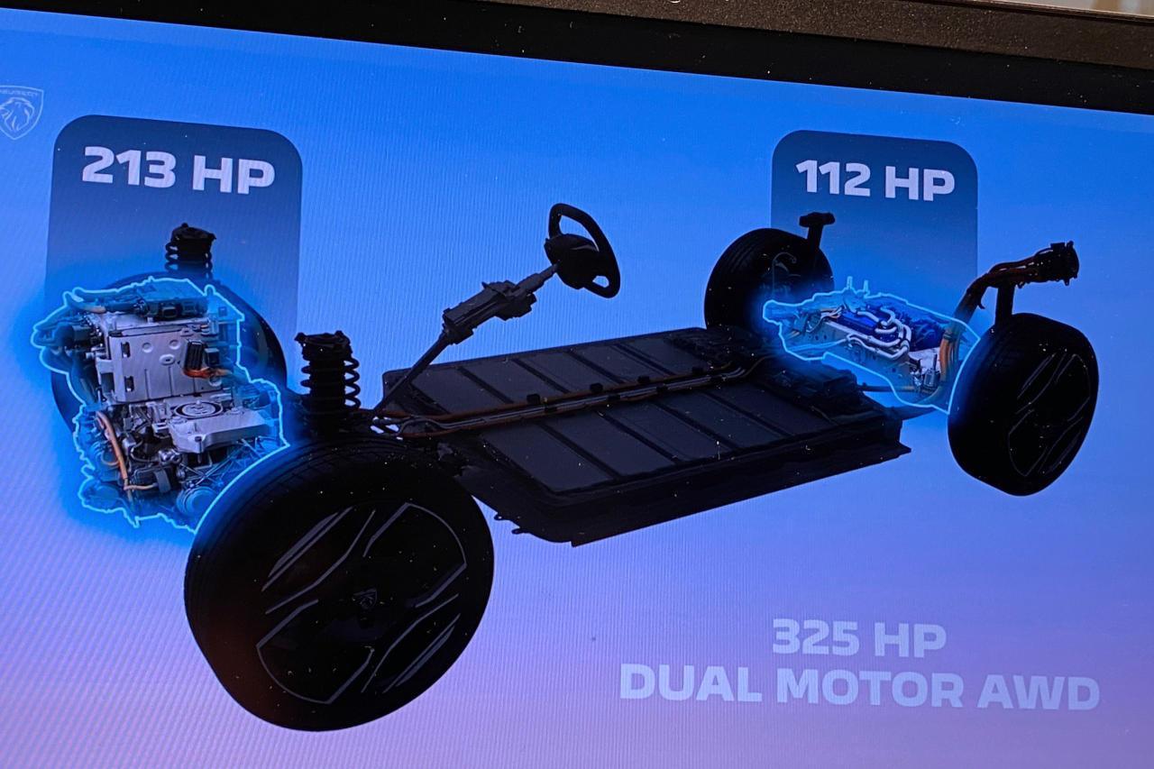 Modelele e-3008 și e-5008 sunt deja disponibile cu motorizări electrice de 210 și 230 CP, însă Peugeot pregătește o variantă mai performantă, cu tracțiune integrală și o putere combinată de 325 CP. Aceasta va folosi motorul de 210 CP pe puntea față, la care se adaugă un motor electric suplimentar, de 112 CP, pe puntea spate. Sistemul va fi alimentat de o baterie de 73 kWh, mai compactă decât cea de 97 kWh disponibilă pe versiunile cu autonomie extinsă.