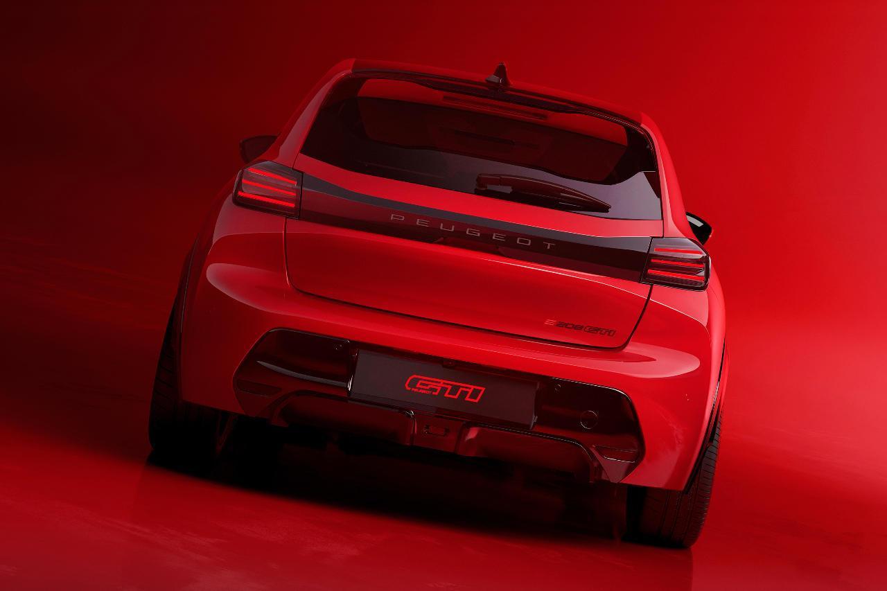 Peugeot e-208 GTi se bazează pe versiunea facelift a modelului e-208, ușor de recunoscut datorită semnăturii luminoase cu trei „gheare”. Totuși, diferențele față de versiunea standard sunt evidente. Suspensia este coborâtă cu trei cm, iar ecartamentele sunt lărgite: +5,6 cm, pe față, și +2,7 cm, pe spate, oferind o postură mai musculoasă.