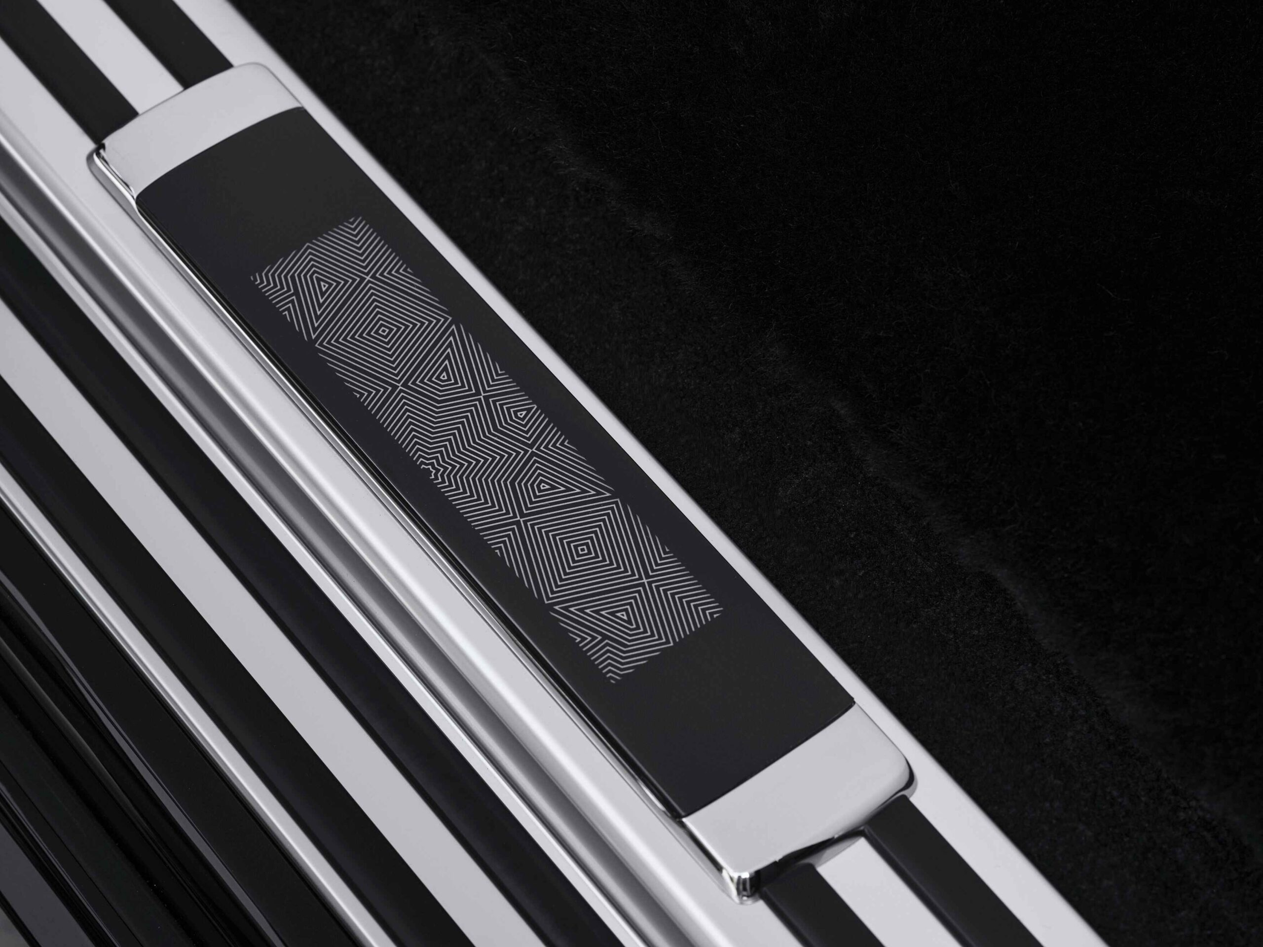 Suita interioară este finisată în piele serenă Selby Grey și Black, cu borduri și covoare negre pentru scaune, accentuate de motive contrastante Black Mashrabiya brodate pe tetierele față și spate. Ușile Starlight fascinante sunt tivite cu borduri Selby Grey și cusături contrastante negre. Pragurile iluminate de pe prag, care prezintă o secțiune transversală a motivului gravurii capotei, completează această comandă emblematică