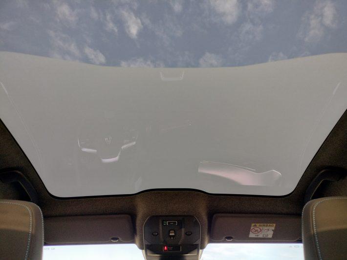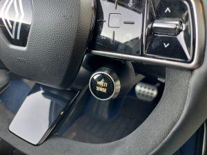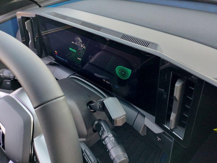 La mijloc este o chichiţă. Așa cum am văzut deja la noul Renault Rafale, miracolul se produce atunci când acţionezi butonul din zona oglinzii retrovizoare interioare. Este amplasat exact acolo unde de obicei se află comanda pentru acționarea electrică a trapei. Ceea ce urmează este un spectacol captivant: treptat, un total de nouă segmente transversale se opacizează unul după altul şi izolează habitaclul de lumina puternică, de căldură, frig sau priviri indiscrete.