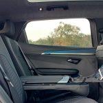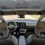 O mocheta de un albastru intens acoperă întreaga podea (dar şi spaţiile de depozitare din toate portierele). Asta răceşte un pic atmosfera interioară care virează astfel spre o tentă avangardist-chic potrivită unui automobil electric care a reuşit să îşi asigure anul trecut titlul de Maşina Anului în Europa dar şi unul de Best Electric Car în România. Tot în 2024. Absenţa tunelului median în spate adaugă un plus de libertate de mişcare care nuanţează şi mai mult disponibilitatea de spaţiu. La peisajul aerisit şi foarte luminos din interior contribuie din plin geamurile spate care măsoară până la 80 cm în lungime. Așadar oferă o deschidere vastă a câmpului vizual lateral perfect armonizat cu priveliştea oferită de plafonul Solarbay.