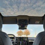 Plafonul „electrificat” este asortat cu o oglindă interioară – cum altfel? – digitală. Pe lângă funcţia heliomată care se instalează automat, se poate transforma și în ecran color. Dispune de un meniu stufos care include reglaje pentru luminozitate, poziţionarea câmpului vizual în plan orizontal şi vertical plus posibilitate de rotire a imaginii afişate astfel încât redarea video să fie cât mai naturală pentru cel de la volan.
