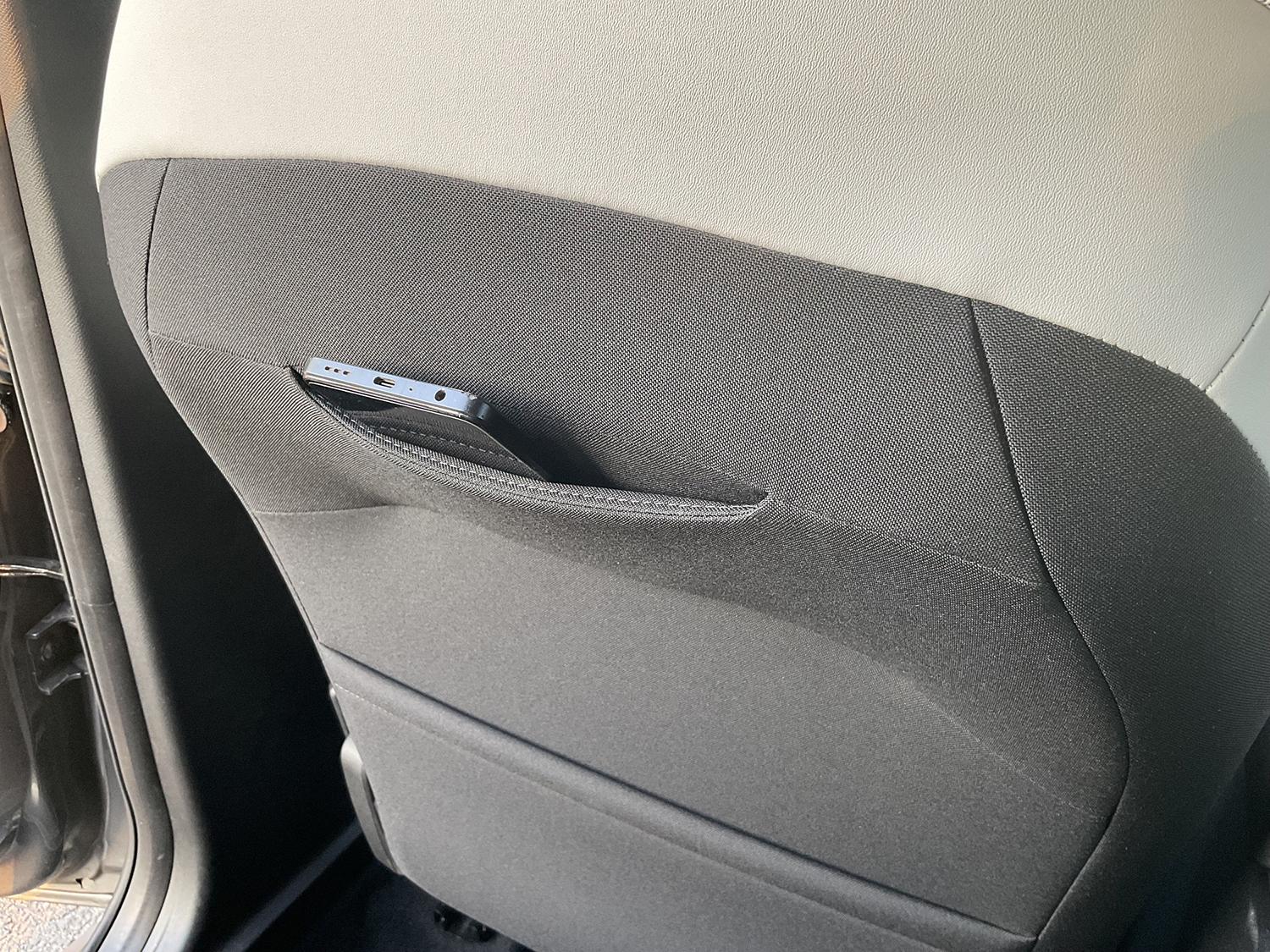 Observ că am la dispoziţie o priză de 12V şi două porturi USB-C care se adăugă la buzunarele suplimentare create în partea de sus a spătarelor de la scaunele față.