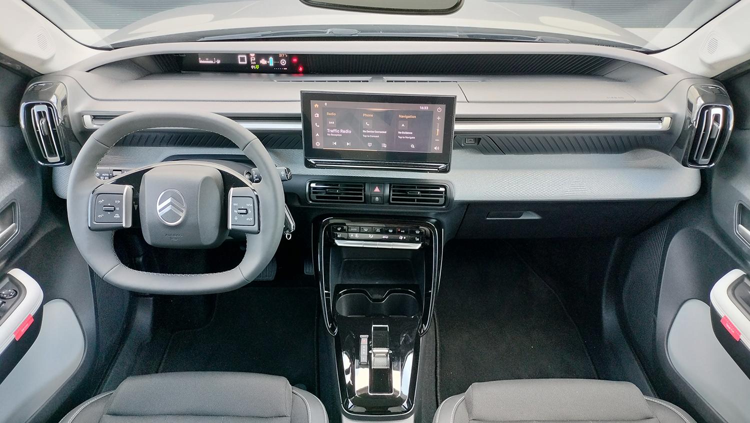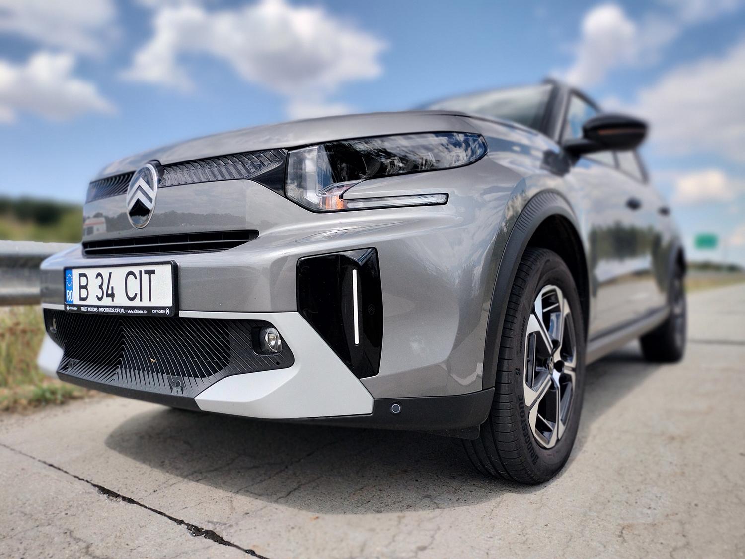 Se pare că fac cunoştinţă cu noul model într-o manieră progresivă: mă aflu într-o versiune C3 Aircross cu 5 locuri, nivel de echipare MAX şi propulsie hibridă de 145 CP cuplată la o transmisie automată cu dublu ambreiaj.