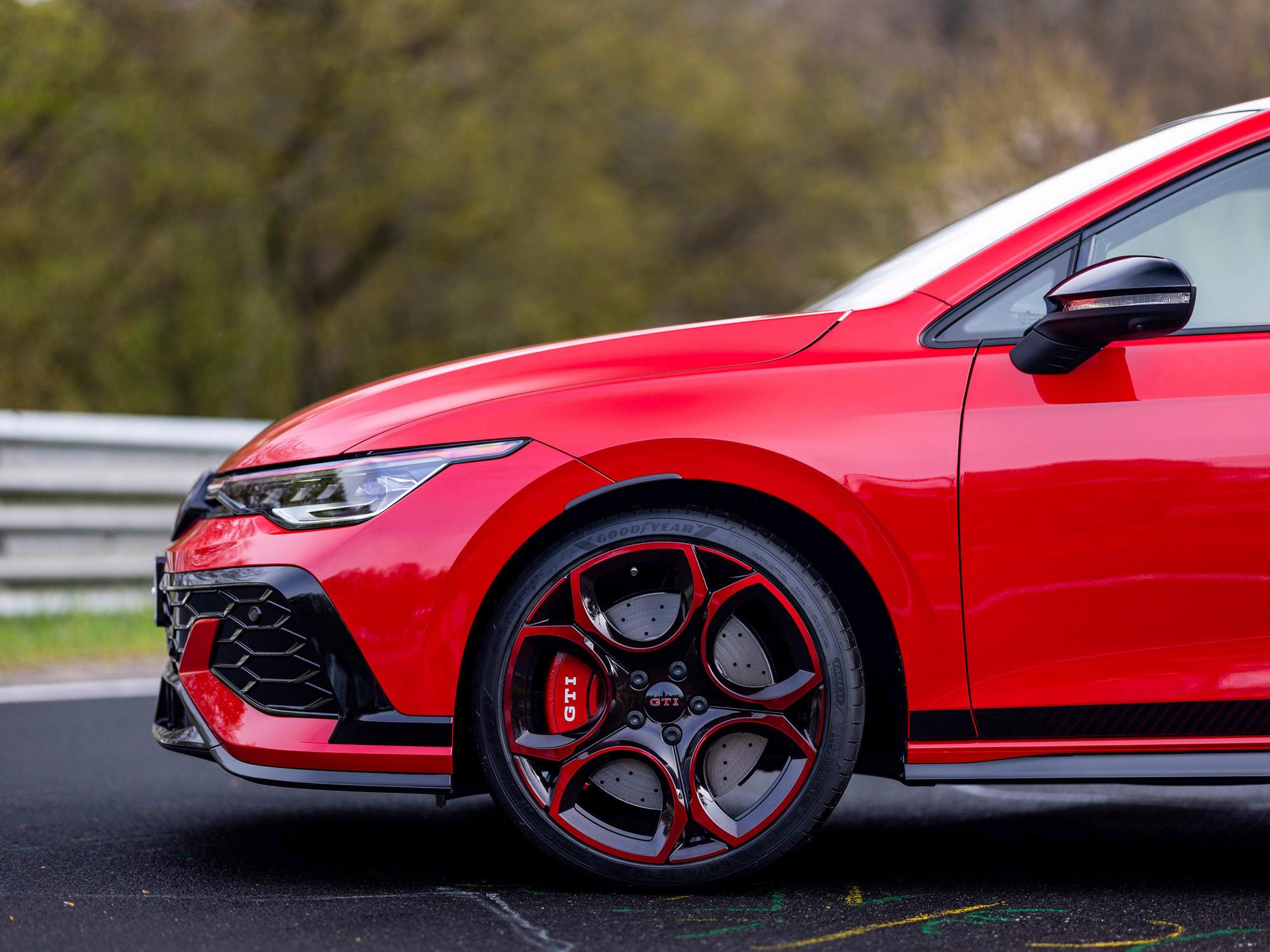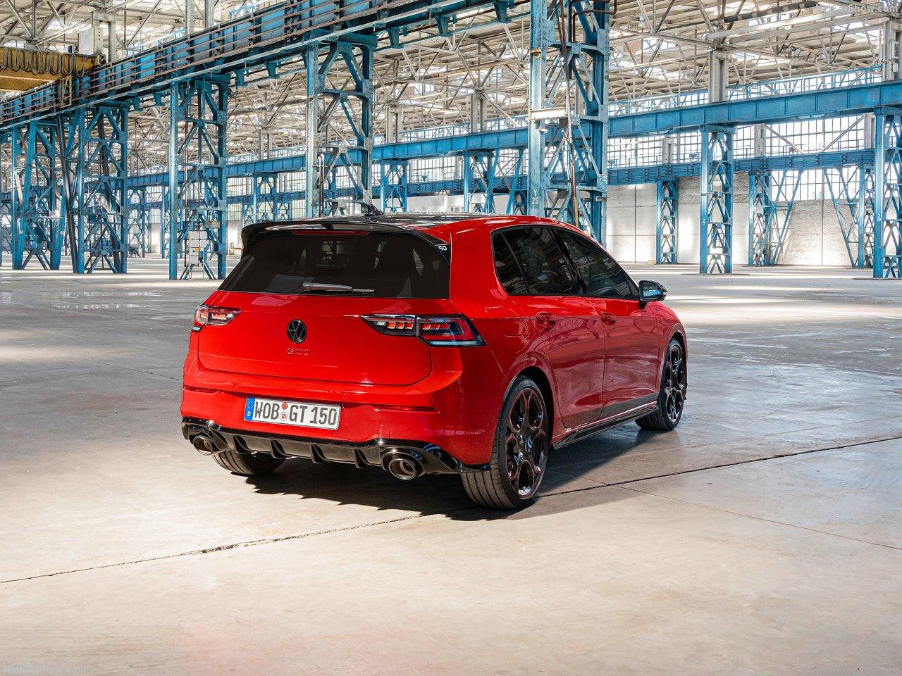 Volkswagen a abordat cu seriozitate tema reducerii greutății, chiar dacă efectul final rămâne mai degrabă simbolic. Fiecare pneu semi-slick economisește 1,1 kilograme comparativ cu un cauciuc convențional, iar jantele forjate contribuie cu o reducere de câte trei kilograme fiecare. În plus, sistemul de evacuare Akrapovič aduce un avantaj suplimentar de 11 kilograme. În total, ediția aniversară devine cu aproximativ 30 kg mai ușoară decât un GTI standard. Totuși, având în vedere că un Golf GTI de bază cântărește 1.458 kg, acest efort de slăbire nu schimbă fundamental comportamentul general al mașinii, ci doar îl rafinează.