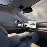 Interiorul minimalist pune accent pe spațiu și materiale premium. Se remarcă ecranul central flotant cu o diagonală de 15,4 inchi. În fața celui de la volan avem un al doilea ecran de 12,3 inchi. Opțional, clienții pot comanda un head-up display cu realitate augmentată.
